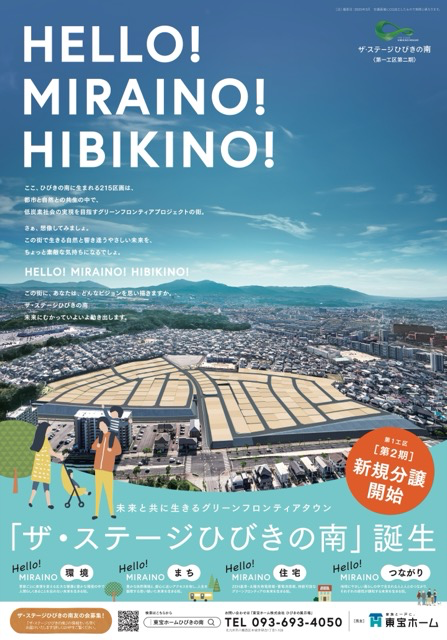 ここ、ひびきの南に生まれる215区画は、 都市と自然との共生の中で、 低炭素社会の実現を目指す グリーンフロンティアプロジェクトの街。